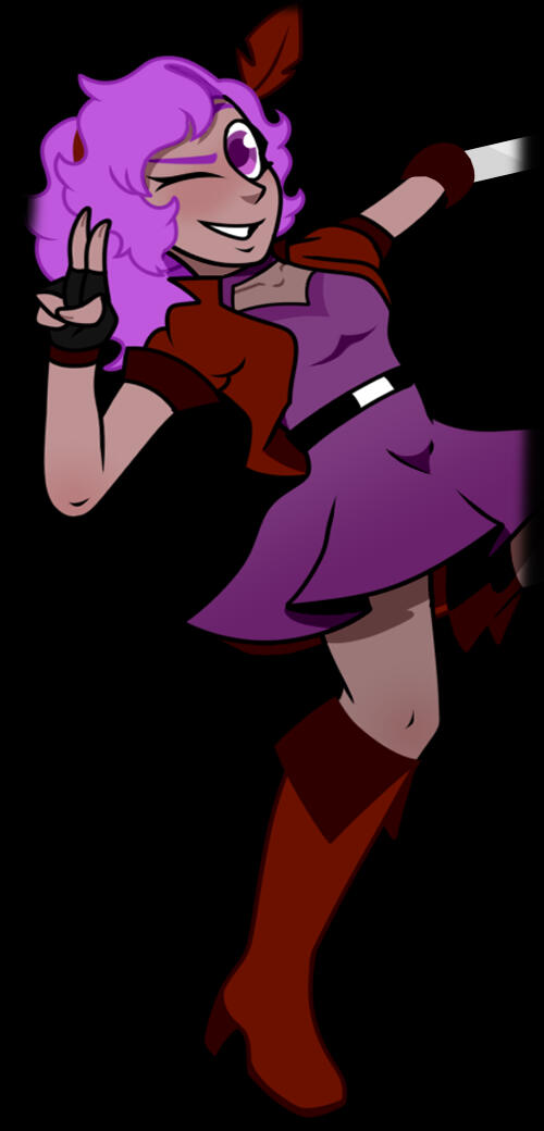 WEAPON // "Matchmaker" and "Spark" - Sword and knife respectively, the sword hilt embedded with a fire Dust crystal for charging her Semblance. It can be refueled by either pouring liquid fire Dust on the crystal, or replacing the crystal itself.